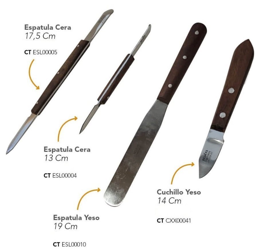 | Espatulas Mango de madera | Cera 13cm CTESL00004, Cera 17,5 cm CTESL00005, Yeso 19cm CTESL00010 |