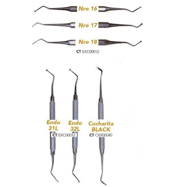 | Excavadores | Cucharita Black, Endo 31L, Endo 32L, N°16, N°17, N°18 |