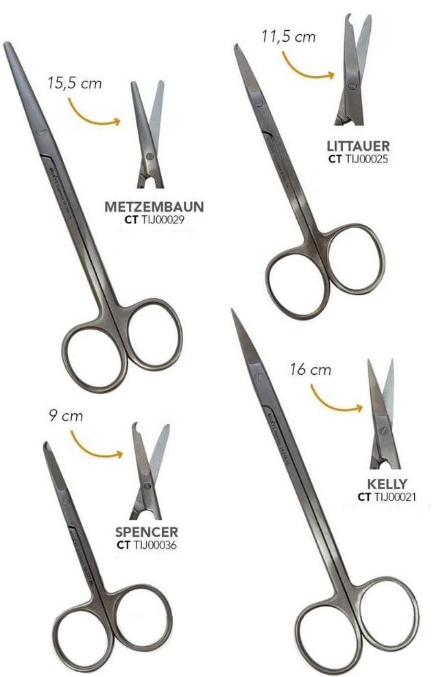 | Tijeras Belkys | Kelly 16 cm, Littauer 11,5 cm, Metzembaun 15,5 cm, Spencer 9 cm |